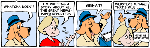 ONE DAY... A DOG NAMED WEBSTER WALKED INTO YOUR NEWSPAPER OFFICE. HE APPLIED FOR A JOB AS A "NEWSHOUND"...